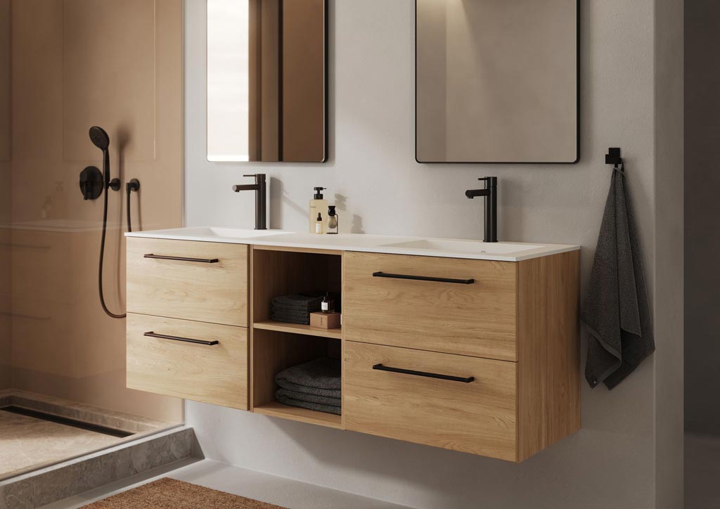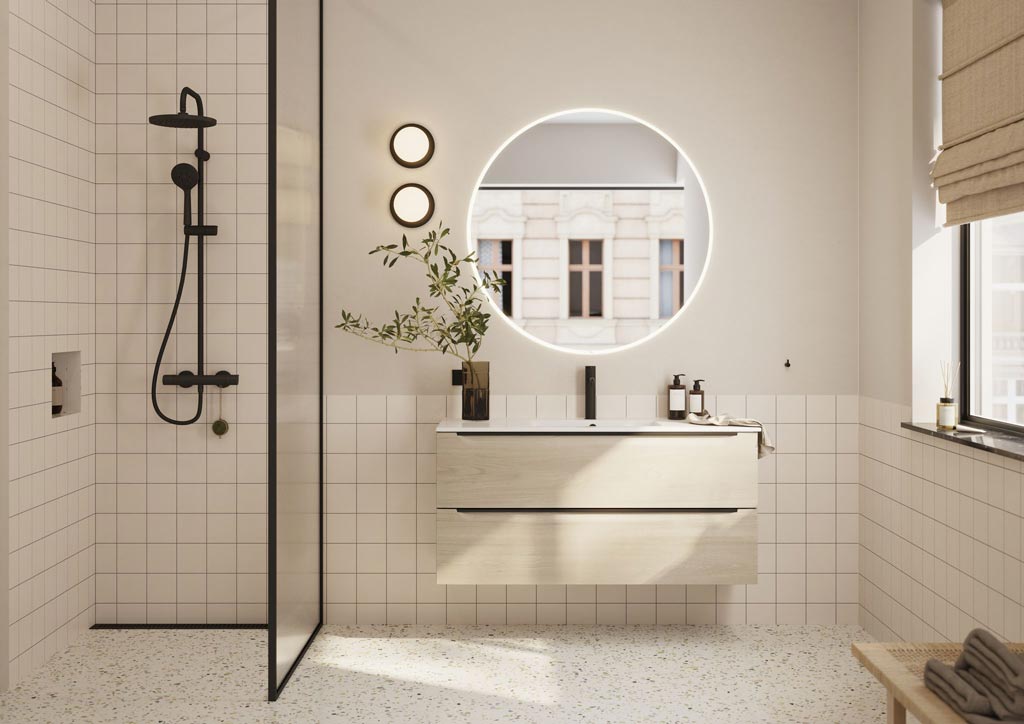 Kom og se vår utstilling! Vi har et bredt utvalg av baderomsinnredning, dusjhjørner/kabinett, blandebatterier osv. i vår butikk på Skotterud. Et bad trenger tilbehør, det har vi!